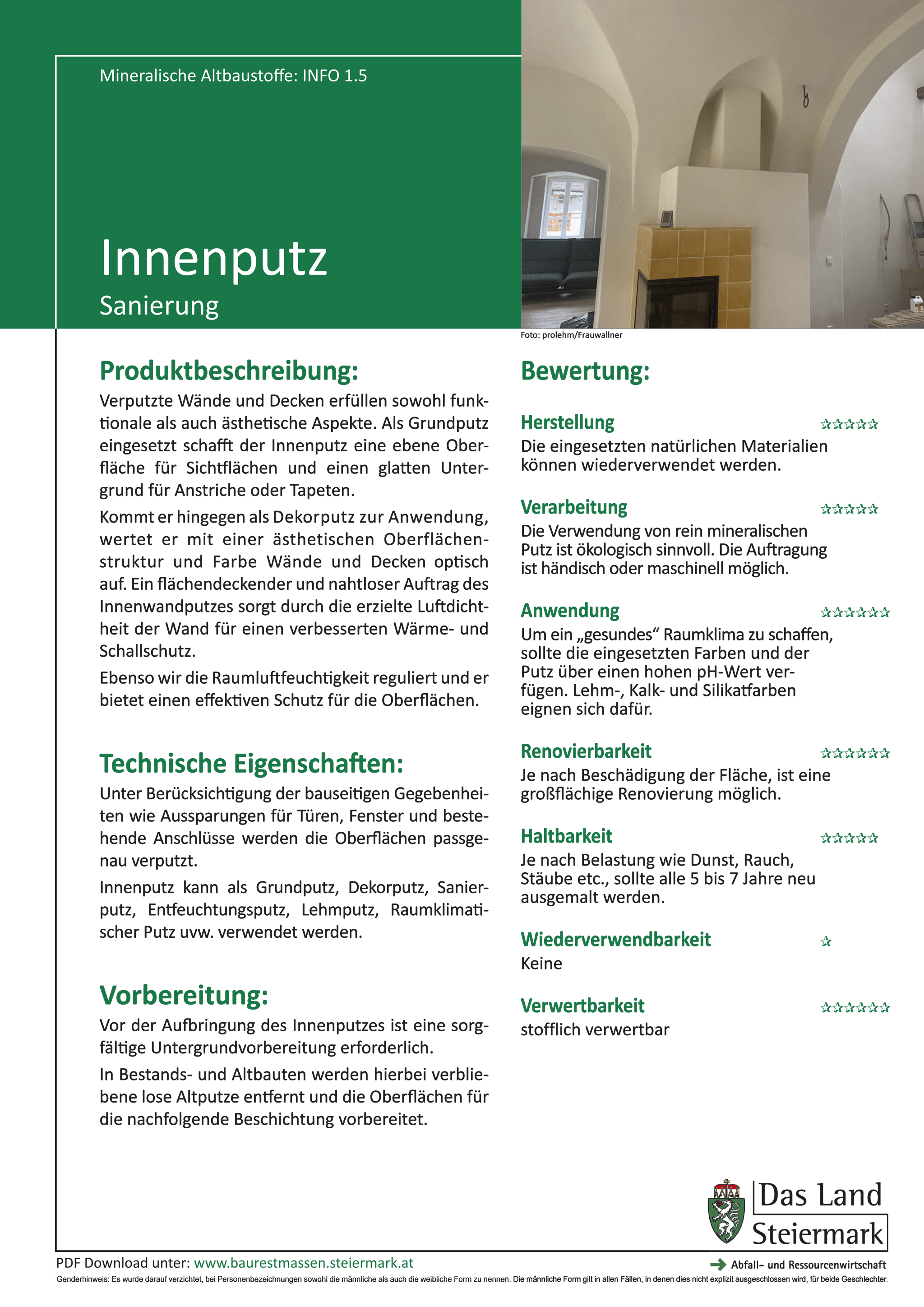 Sie können diese Infoblätter nebenan stehend als PDF herunterladen (Download auch auch von der Homepage der Abteilung A14 unter: www.baurestmassen.steiermark.at).